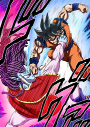 During Goku's fight with Gas in the Granolah the Survivor Saga, he was unable to make headway confronting Gas after the Heeter'southward instincts had been unleashed, even after he and Ultra Ego Vegeta fought together against him. Anger over how Granolah had been brutalized continued to prod at his focus, decreasing the effectiveness of Perfected Ultra Instinct to a point where Vegeta noticed and told Goku that his Ultra Instinct was no different, further telling him to figure it out. This led to Goku briefly meditating and assuming the Ultra Instinct Sign form, applying his Saiyan nature to the battle to wield Ultra Instinct to a much higher level than earlier. This immune him to lucifer Gas in power and slightly surpass him, even when Gas survived Granolah's full power blast and continued to fight him and Vegeta. Yet, they were instantly knocked out by Black Frieza, with Frieza'due south power allowing him to bypass the instantaneous defense of Ultra Instinct.